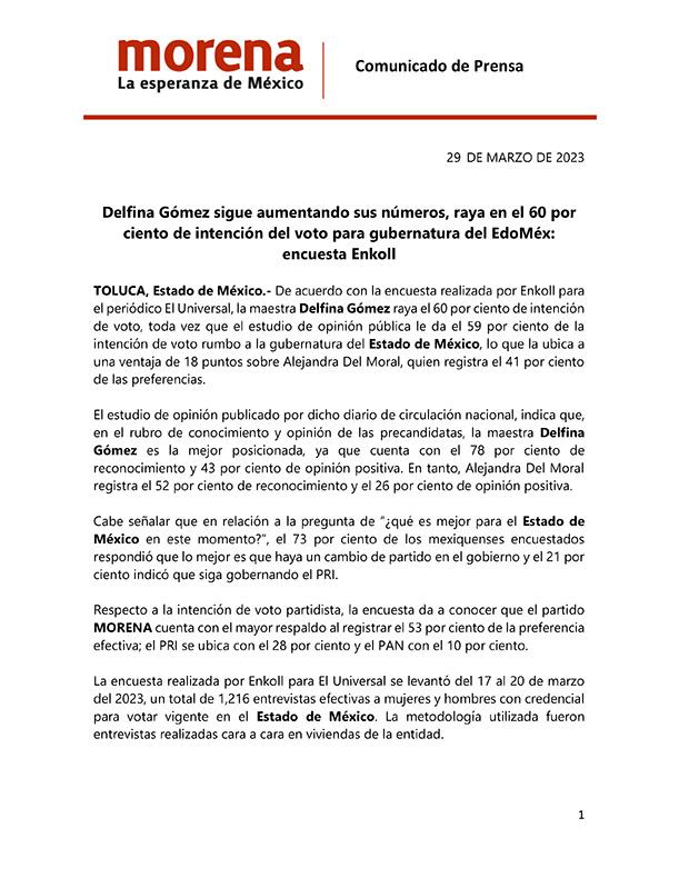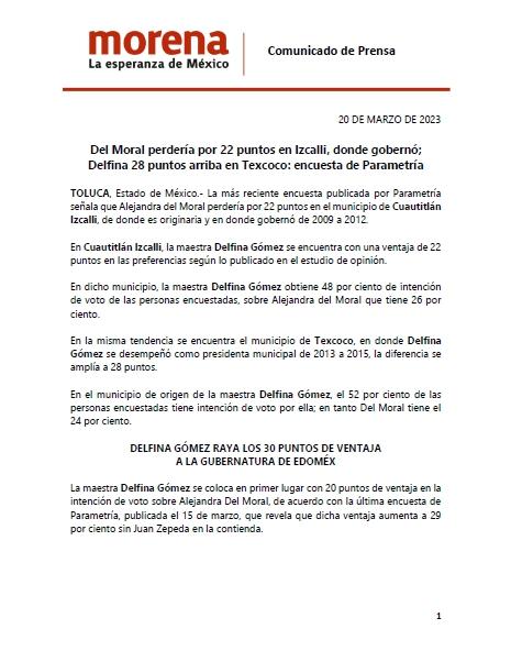 Ventaja de Delfina Gómez se fortalece en el Edoméx