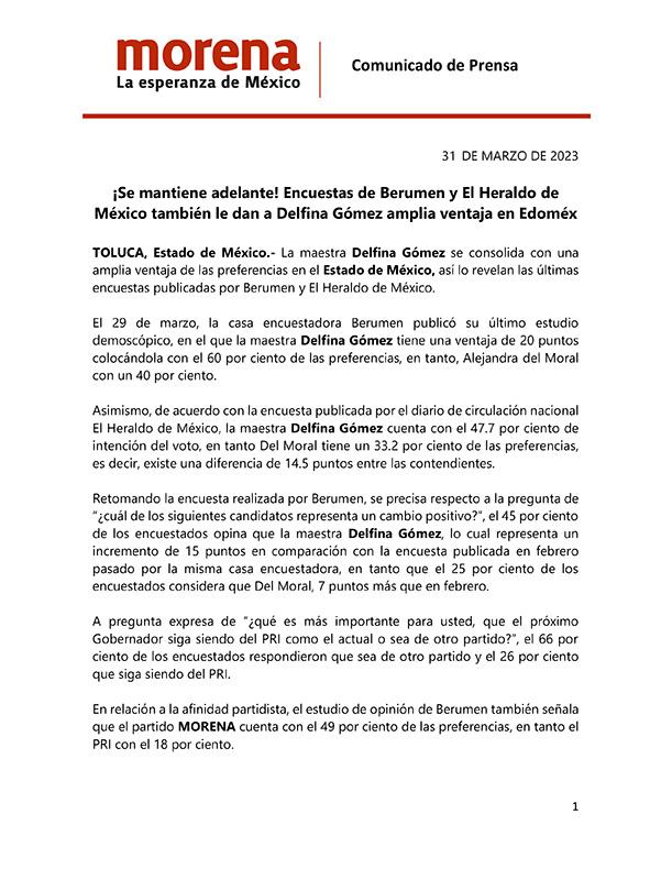 ¡Se mantiene adelante! Encuestas de Berumen y El Heraldo de México