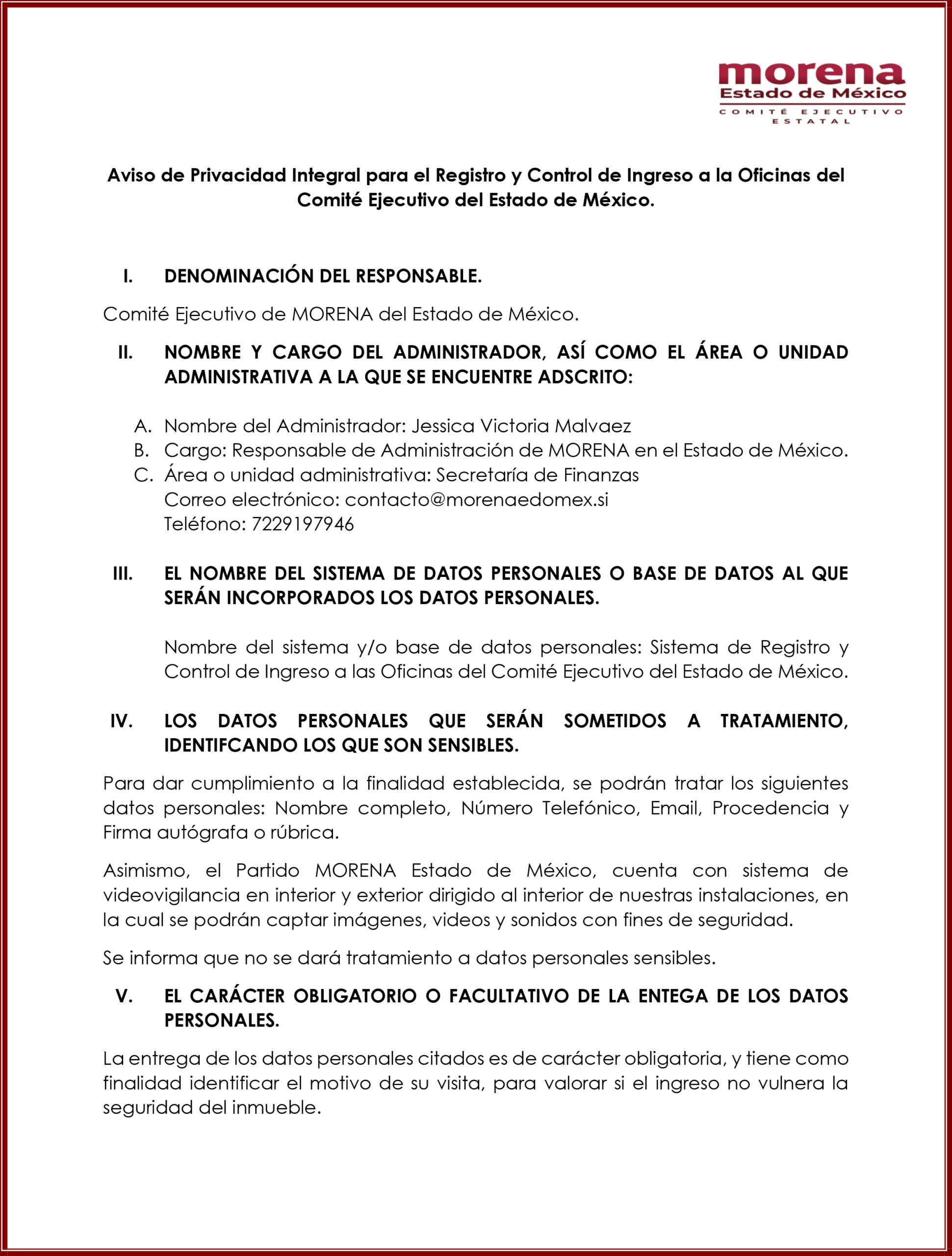 By Morena Edo. Mex|2025-09-01T12:51:11-06:00septiembre 1, 2025|Comentarios desactivados en Aviso de Privacidad Integral para el Registro y Control de Ingreso a la Oficinas del Comité Ejecutivo