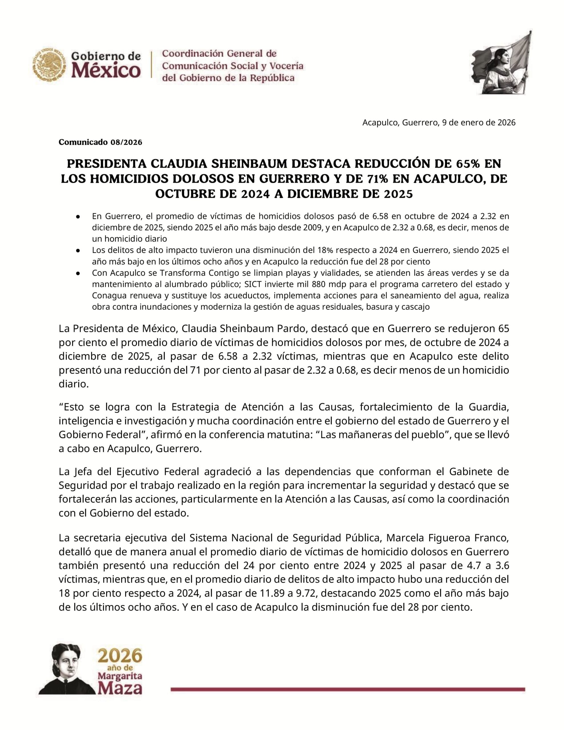 COMUNICADO 08-PRESIDENTA CLAUDIA SHEINBAUM DESTACA REDUCCIÓN DE 65 EN ACAPULCO, DE OCTUBRE DE 2024 A DICIEMBRE DE 2025-1