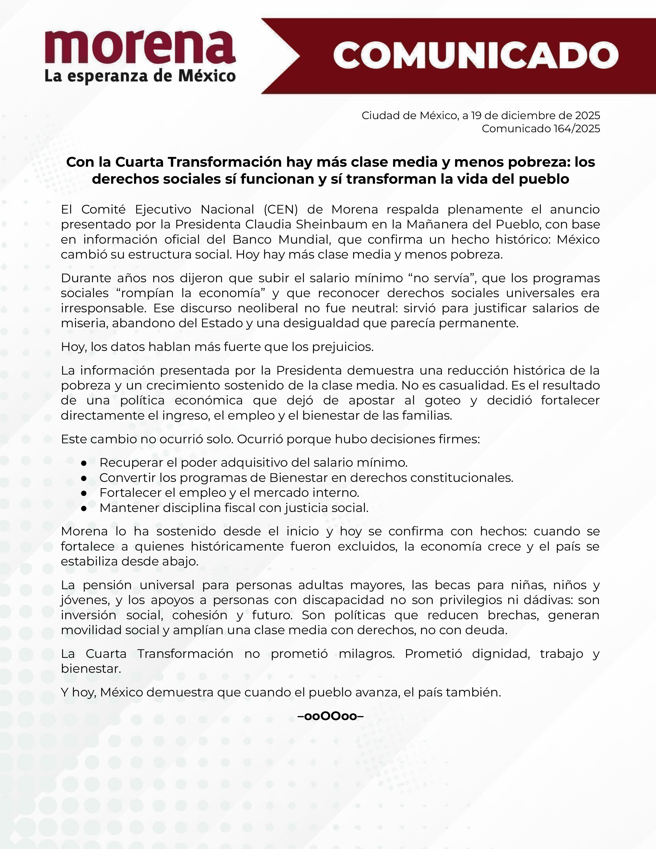 By Morena Edo. Mex|2025-12-22T13:25:28-06:00diciembre 22, 2025|Comentarios desactivados en Comunicado 164_Con la Cuarta Transformación hay más clase media y menos pobreza.docx