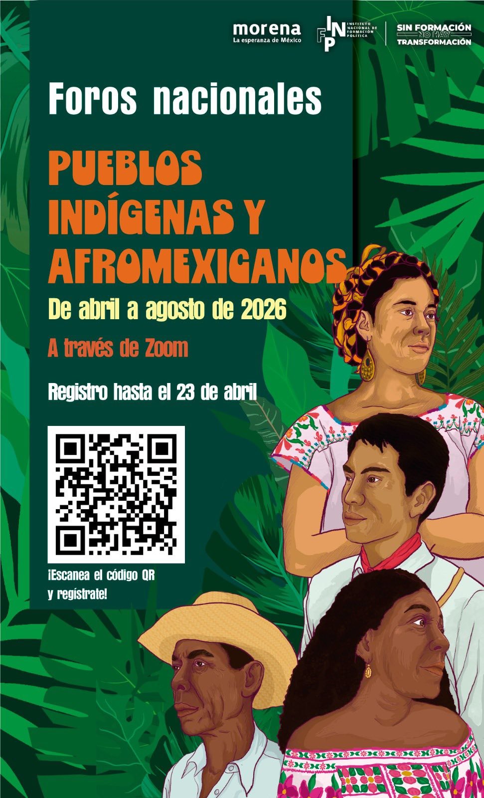 México es un país pluricultural y multiétnico que basa su grandeza en sus pueblos y culturas. Por ello, el Instituto Nacional de Formación Política de Morena les invita a participar en los *Foros nacionales “Pueblos Indígenas y Afromexicanos”*, con el fin de generar un espacio de diálogo, análisis y debate que aborde los derechos y demandas actuales de los pueblos indígenas y afromexicanos.